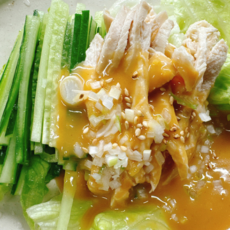 ![]() 蒸し鶏のネギ塩ダレ 900円 |